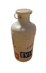 The water bottles or the gourds (a word used in Belgium) are made of plastic since 1954, hermetically closed by a stopper of the same material, always of the same capacity (half a liter) positioned in bottle cages attached to the center of the handlebars and the down tube of the frame.