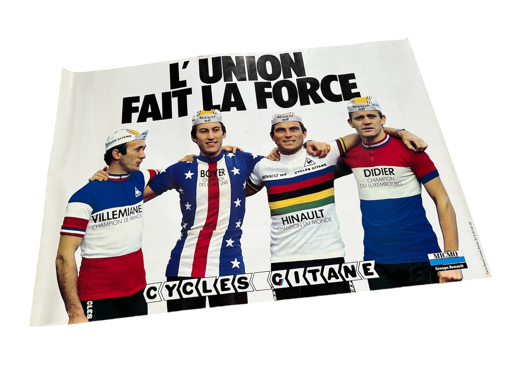 Description: 1980 - Cycles Gitane poster with the WC Bernard Hinault