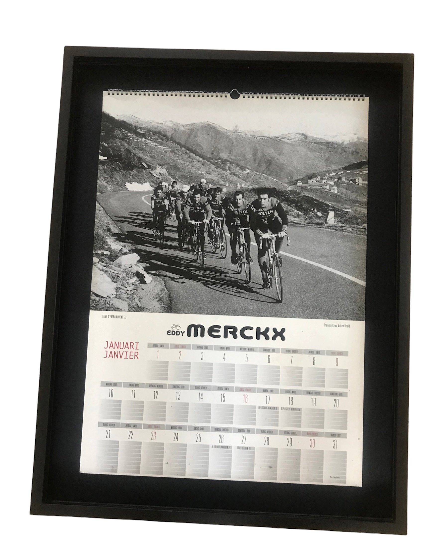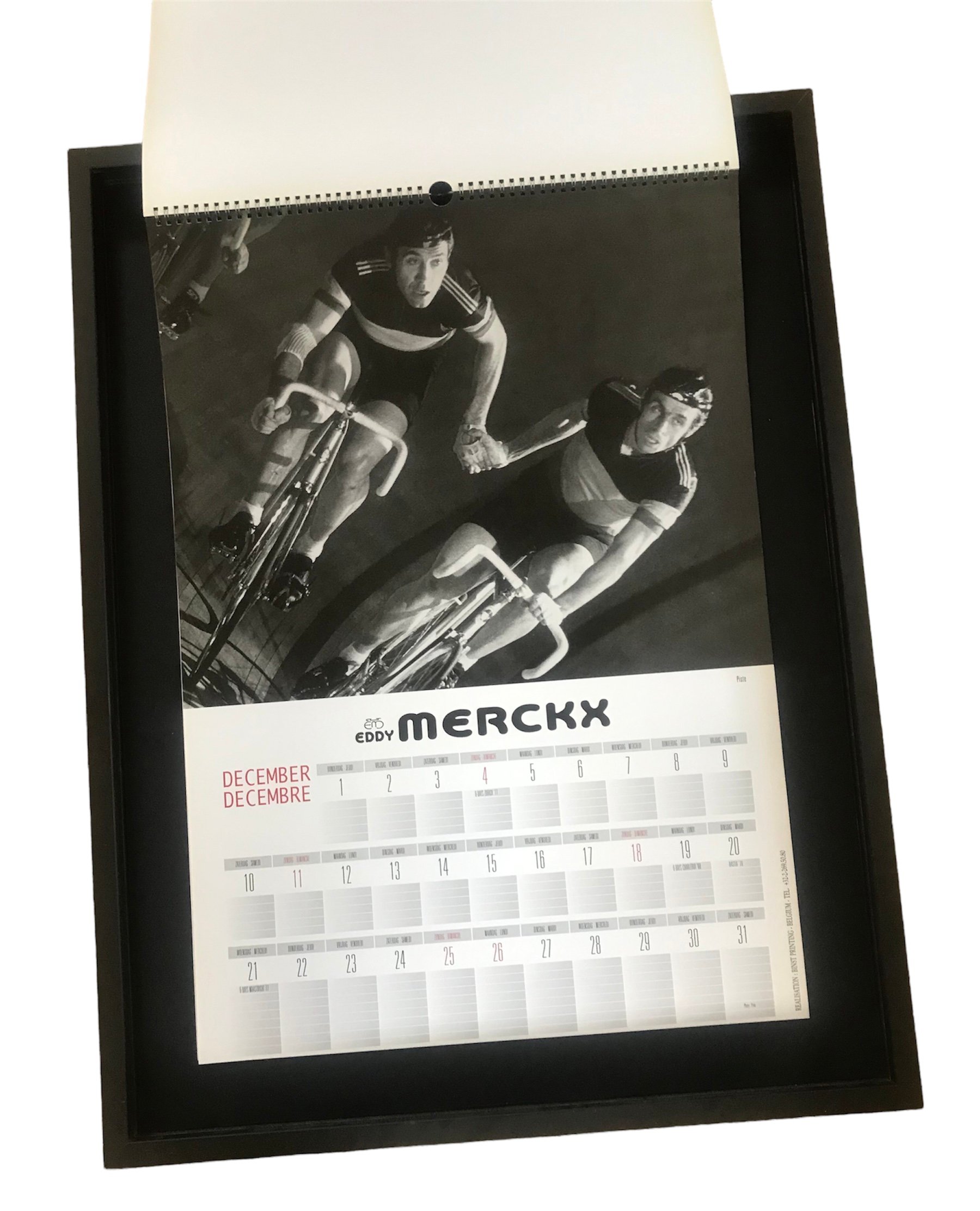 Its not a current reprint but an ORIGINAL promo calendar from Eddys company to celebrate the 25th anniversary. Been stored in a house in excellent condition and comes from the personal collection of the former soigneur of Eddy Merckx.