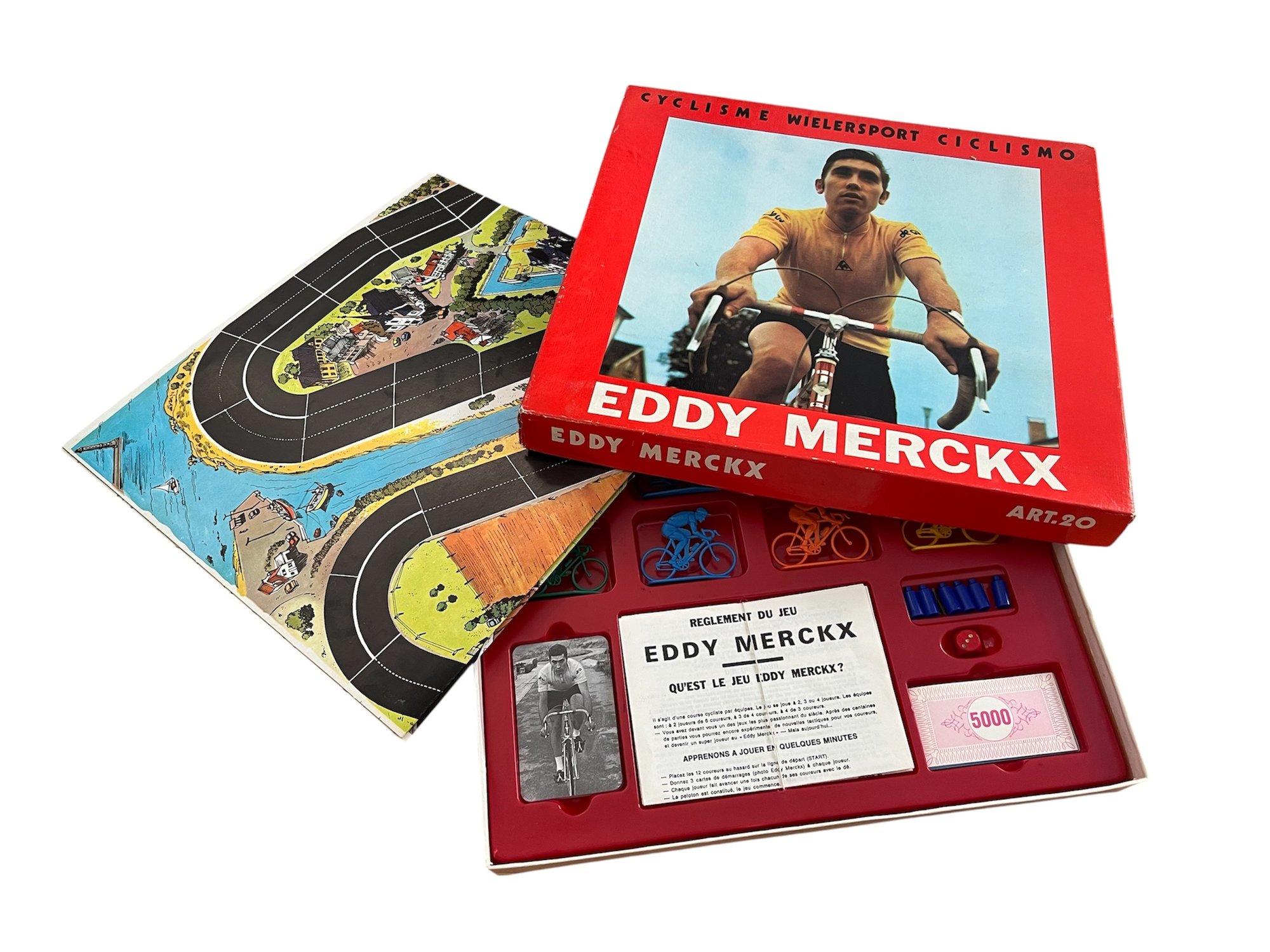 This beautiful red box features a giant photograph of Belgium's greatest cycling champion: Eddy Merckx. The whole of Belgium was passionate about the Eddy Merckx game, which is original, great fun and thrilling to play.