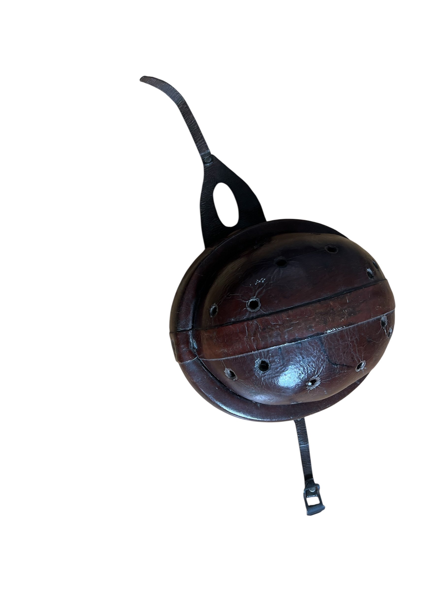 C. 1920s/1930s leather stayer's helmet with reinforcements and strap. Belonging to Toto Grassin.